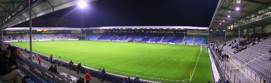 Benelux-Tour vom 18. bis 20. Oktober 2002 De Graafschap NEC Nijmegen 1:3 (0:0) RSC Anderlecht RAEC Mons 2:1 (0:0) F91 Dudelange CS Grevenmacher 2:0 (2:0) Drei Länder in drei Tagen was liegt da näher, als eine Tour durch die Benelux-Staaten zu machen? Unser Programm war schnell auf die Beine gestellt. Bei unserem monatlichen Stammtisch einigten sich Gernot, Thomas und ich, dass wir auf jeden Fall ein Heimspiel des RSC Anderlecht besuchen müssten. Gernot ist von Kindesbeinen auf Anhänger dieses Klubs und hat schon unzählige Heim- und Auswärtspartien von Sporting besucht, Thomas und ich hingegen fehlte das Constant Vanden Stock noch. An unserem gemeinsamen freien Wochenende stand das Heimspiel gegen den Aufsteiger RAEC Mons an, was mich zunächst nicht so begeisterte, da die Elf aus der Heimatstadt des Kinderschänders Dutroux noch nie erstklassig war und dementsprechend keine Tradition hat. Natürlich wäre mir ein Knaller gegen Club Brügge oder Standard lieber gewesen. Oder auch ein Derby gegen Antwerpen oder Mechelen. Aber Mons? Na ja, der starke Saisonauftakt des Neulings sollte mich später einigermaßen überzeugen. Die Partie war für Samstagabend, 20 Uhr, angesetzt. Also blieb das Freitagabendspiel in den Niederlanden und ein x-beliebiges Sonntagsspiel in Luxemburg. In Holland stand an besagtem Tag nur eine Partie auf dem Spielplan, und wir hatten Glück, dass es ausgerechnet die Begegnung zwischen De Graafschap und NEC Nijmegen war. Denn Doetinchem liegt unweit der deutschen Grenze und ersparte uns eine weite Fahrt ins Landesinnere. Außerdem hatte noch niemand von uns diesen Ground gemacht, was die Sache noch schmackhafter machte. Besonders reizvoll wurde es dann, als wir erfuhren, dass es sich bei dieser Partie um das Gelderland-Derby handelte. Wer kennt sich denn schon in der niederländischen Topographie so gut aus? Wir jedenfalls nicht. Nijmegen liegt knapp 50 km von Doetinchem entfernt, für entsprechend Stimmung sollte also gesorgt sein. Und wir wissen jetzt, woher der Gelderländer Bauernspeck kommt. Für Luxemburg hatten wir uns eigentlich die Partie Jeunesse Esch gegen Progres Niedercorn ausgeguckt, weil Jeunesse wohl so etwas wie das Bayern München Luxemburgs ist. Aber ein Blick auf die Tabelle und den Spielplan änderte unsere Pläne, denn ausgerechnet an diesem Sonntag stand das Spitzenspiel zwischen dem Tabellenführer und zuletzt dreifachen Meister F91 Düdelingen und dem Zweiten CS Grevenmacher an. Knapp drei Stunden Fahrt sind es von Mannheim nach Doetinchem. Und auf dem Treborgseweg, der direkt ins Zentrum der Stadt führt, sieht das geschulte Auge rechter Hand die Flutlichtmasten in den Himmel ragen. Also schnell abgebogen und die Karten geholt. "Deze wedstrijd uitverkocht" stand am Kassenhäuschen des Stadions, aber wir hatten glücklicherweise die Tickets schon vorbestellt. Das Gebiet, in dem das Stadion liegt, erinnert an Mönchengladbach-Eicken, vielleicht sogar noch schöner. Ein Einfamilienhäuschen reiht sich hier an das