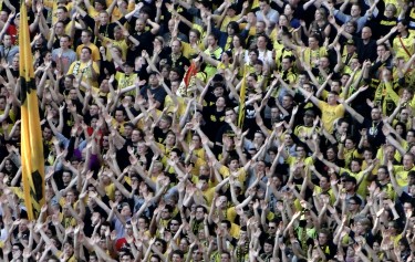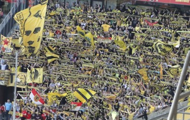 Bei den BVB-Fans ist dagegen alles im Lot, und man unterstützt seine Farben dementsprechend, wobei sich die